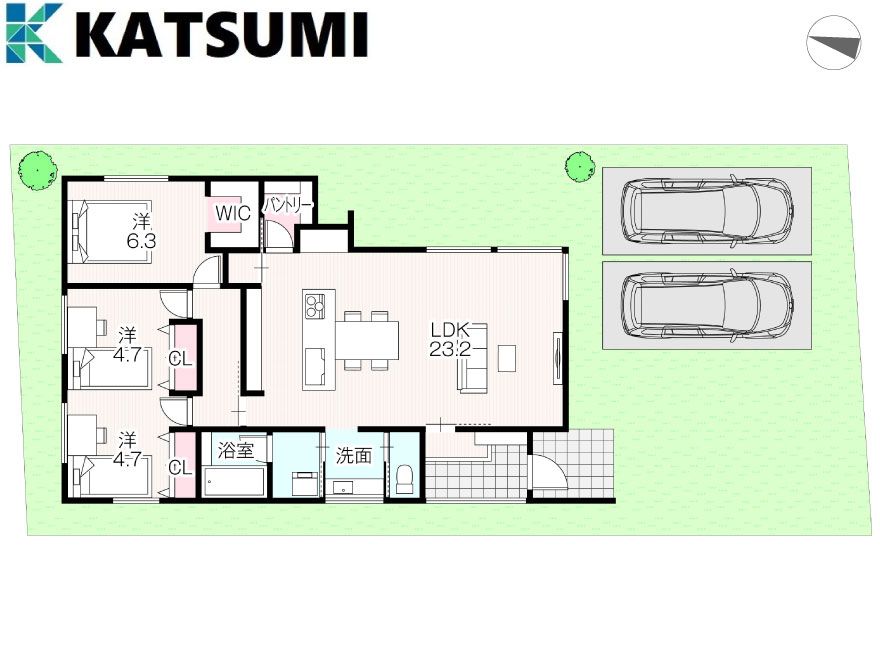 This contemporary designer house in Inami Town, Hyogo Prefecture, offers a high-quality living space in a single-story layout. Built in January 2025, this nearly new 3LDK property features a spacious 23.2-jo (approximately 38.3 sqm) living-dining-kitchen area designed with a sense of unity and openness. Large, connected windows enhance the feeling of space and light. The kitchen is fully equipped for comfortable daily tasks, and a large-capacity pantry next to it provides ample storage for everyday groceries and emergency supplies.