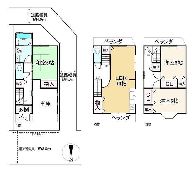 The house sits on a flat 50.89 square meter plot (registered area) in a residential urbanization area. The land is zoned as Category 1 Medium-to-High Rise Exclusive Residential District. The structure is a wooden three-story building with road frontage on three sides. The property comes with available parking for one vehicle.