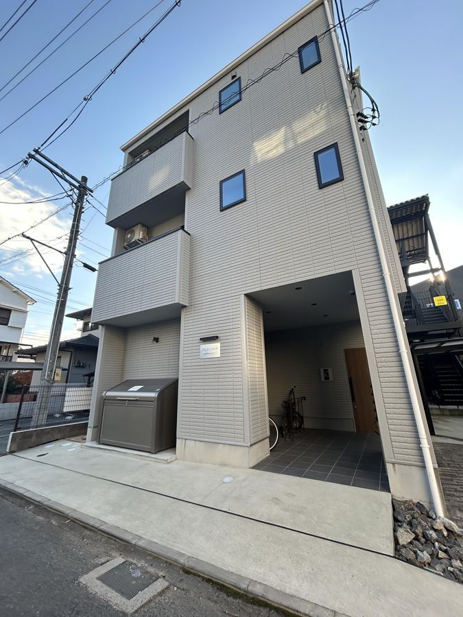 This is an introduction to an income-producing apartment building located in Furuichi 2-chome, Hiroshima. The property is a newly built structure completed in June 2021 (Reiwa 3). The building is a 3-story wooden structure containing 14 units, each with a 1K layout and private areas ranging from 24.42㎡ to 27.14㎡. The total building area is 354.29㎡ (approximately 107.17 tsubo) on a land area of 268.4㎡ (approximately 81.19 tsubo).
