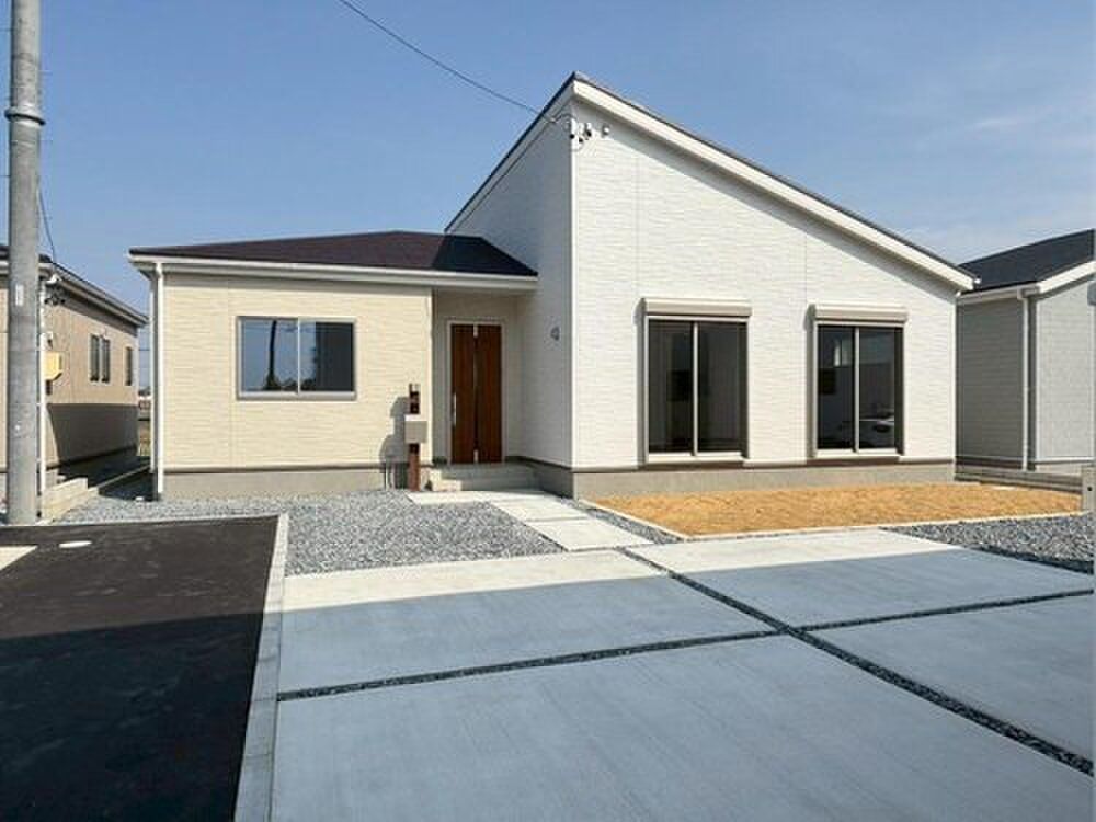 This development of four newly built single-story homes in Yatomi City, Aichi Prefecture, is now complete and available for immediate viewing. The properties feature popular layouts designed for modern living, with spacious south-facing living rooms ranging from approximately 15.7 to 17.2 tatami mats in size. The popular floor plan allows the Western-style room adjacent to the LDK (living-dining-kitchen) to be integrated, creating a versatile open space. Each home is equipped with a Walk-In Closet (WIC) and a Shoe-In Closet (SIC), with ample storage throughout. The specifications include a two-sided south-facing balcony, with one side being an inner balcony.