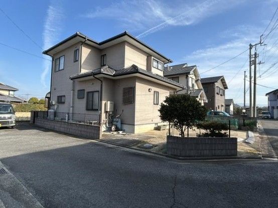 The property has undergone a scheduled renovation in June 2026, including a new kitchen, bathroom, toilet, and wall coverings. The renovation details include the installation of a new color TV door intercom. The kitchen will be replaced with a new, wide system kitchen measuring 2.70 meters. The bathroom will be a new 1-tsubo unit bath by Houstec. The toilet will be replaced with a unit featuring a warm water bidet, and the ceiling and walls will be re-covered. A new vanity with a three-way mirror will be installed, with storage behind the mirror. The parking area will be modified to allow for three parallel parking spaces. The entrance door will have its lock changed and be cleaned. The entrance hall will have its wall and ceiling wallpaper replaced. The first-floor 8-tatami Japanese-style room will have its tatami mat surface replaced and shoji screens re-covered. The second-floor approximately 8-tatami Western-style room will have its wall and ceiling wallpaper replaced. The second-floor approximately 6-tatami Western-style room will have its wall and ceiling wallpaper replaced. The second-floor approximately 6-tatami Japanese-style room will be converted to a Western-style room with wall and ceiling wallpaper replacement. The balcony will be cleaned. An eave is attached to the back, providing a convenient space for drying laundry.