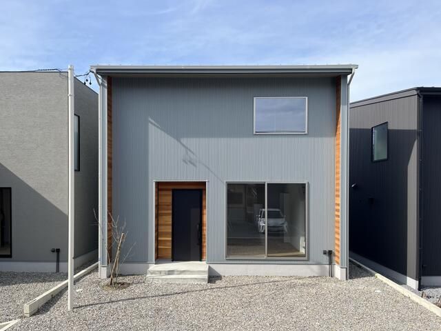 This property is a recently built detached house located in a quiet residential area of Nishio City, Aichi Prefecture. The home, constructed in November 2023, features a thoughtful 3LDK layout designed to foster family togetherness. A key feature is the absence of a traditional entrance hall, which creates an immediate sense of openness upon entry, complemented by a spacious earthen-floored entrance area. The living, dining, and kitchen area is bright and airy, benefiting from large windows and a double-height ceiling, allowing natural light to flood the space and enhancing the feeling of connection between family members.