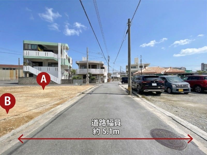 Unit A offers a building area of approximately 96.05 sqm (29.1 tsubo) on a land area of approximately 136.58 sqm (41.3 tsubo). It is a two-story, wood-frame structure. Facilities include a counter kitchen with propane gas, a bathroom dryer, warm-water washlet toilet (with two toilets in total), an independent washbasin, a walk-in closet, underfloor storage, a monitor-equipped intercom, and water and sewage connections. Parking is available for three cars in a side-by-side arrangement. The property is offered for sale with a negotiable handover date.