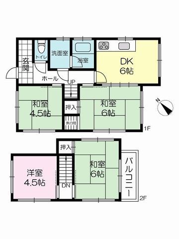 This well-established two-story wooden house, built in August 1983, offers a generous living space of 100.10 square meters on a plot of equal size. The property is currently vacant and ready for immediate handover. The layout is a versatile 4DK, featuring a 6-jo dining kitchen on the first floor, along with two Japanese-style rooms (4.5-jo and 6-jo). The second floor comprises a 4.5-jo Western-style room and another 6-jo Japanese-style room, providing ample space for a family.