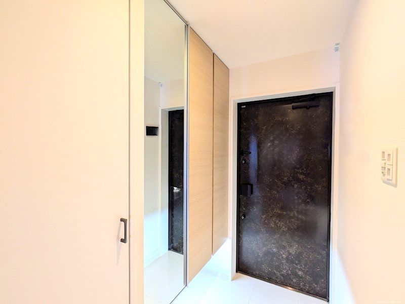 The building offers significant security and convenience features, including a video monitor intercom auto-lock system, two elevators, security cameras, a parcel delivery box, and a vending machine in the lobby. Parking is available on-site for a monthly fee of 4,000 yen. The south-facing balcony is spacious and includes a sink. The property enjoys pleasant views of the mountains.