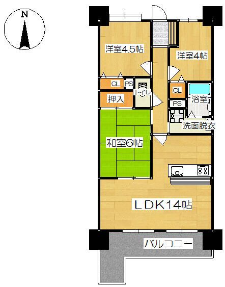 This well-maintained apartment, located in the Neo City Takaida A building in Yamatotakada City, Nara Prefecture, offers a comfortable 3LDK layout with a total floor area of 59.46 sqm. A key feature is the spacious 8 sqm wide balcony facing south, providing a refreshing sense of openness and ample space for relaxation or gardening. The unit is further enhanced by a built-in closet, allowing for tidy storage of clothing and belongings to keep the rooms feeling clean and uncluttered.