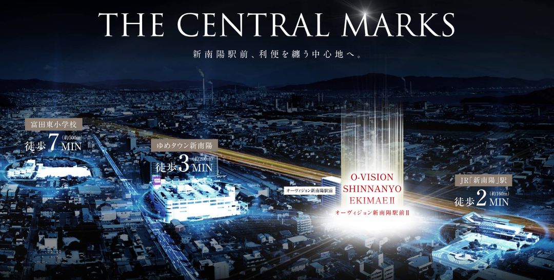 The property's greatest strength is its exceptional convenience. It is just a 2-minute walk (approximately 160m) from JR Shin-Nanyo Station on the Sanyo Main Line, providing direct rail access. The bus stop is equally close. Daily shopping is effortless with the large shopping complex, Yume Town Shin-Nanyo, only a 3-minute walk away. The building will offer ample resident parking with 58 spaces (22 flat, 36 mechanical), a motorcycle parking area for 9 bikes, and bicycle parking for 58 units.