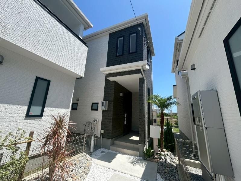 This newly constructed detached house, designated as Building B within a four-unit development, is located in the Gaja area of Nishihara Town, Okinawa Prefecture. The property is scheduled for completion in March 2026 and is available for immediate move-in upon handover. The house is a two-story wooden structure with a total floor area of approximately 88.18 square meters (about 26.7 tsubo) on a land plot of approximately 121.06 square meters (about 36.6 tsubo). The layout is a 3LDK configuration, featuring three Western-style rooms measuring 7.5, 5.25, and 5.25 jo respectively, and a combined living-dining-kitchen area of 17.5 jo.