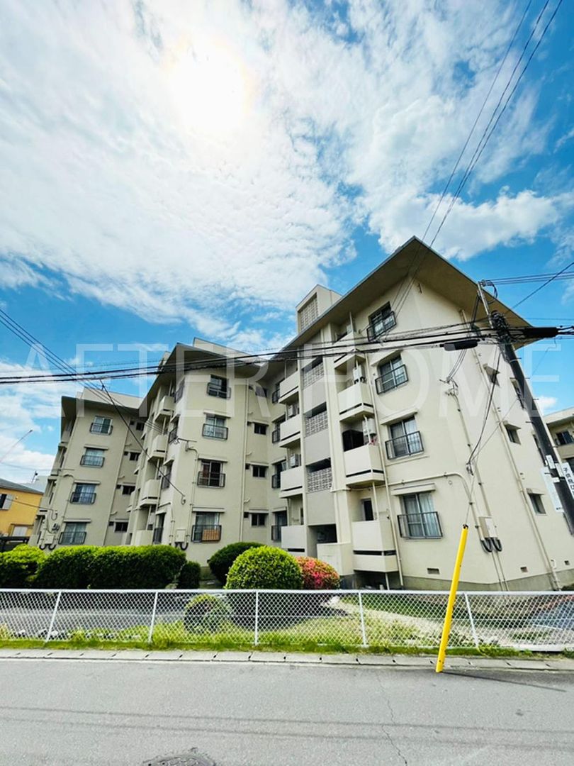 This property is the Yodo Danchi Daiichi Residence, a renovated apartment located in Kyoto's Fushimi Ward. The apartment is priced at 9.8 million yen and features a 2DK layout with a total floor area of 51.93 square meters. It is situated on the first floor of a 4-story reinforced concrete building constructed in August 1966. A key feature is the southwest-facing balcony, which provides excellent sunlight. The property is scheduled for a comprehensive renovation to be completed in March 2026 (Reiwa 8). The renovation work will include replacing the kitchen stove, re-papering the walls, replacing the tatami mat surfaces and fusuma sliding door paper, installing a washlet toilet, replacing the CF (likely flooring), adjusting the fittings, re-tiling the floor, and a full house cleaning.