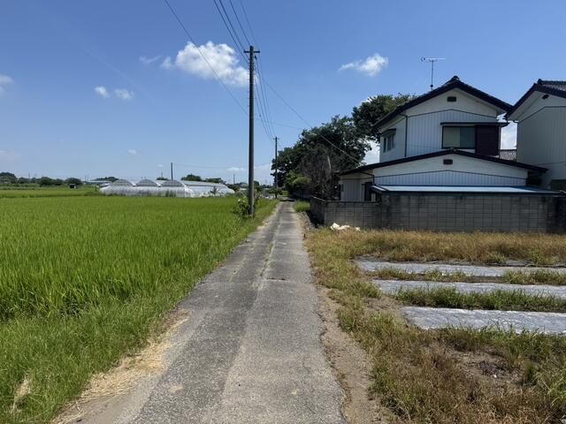 The site is a vacant lot, ready for development, with a negotiable handover timing. It benefits from road frontage on three sides: a 6m wide public road to the southeast with a 16m frontage, a 3.5m wide public road to the southwest, and a 2m wide public road to the north. The property is equipped with side ditches for drainage. The total price is 800,000 JPY, resulting in a low price per tsubo of approximately 7,000 JPY.