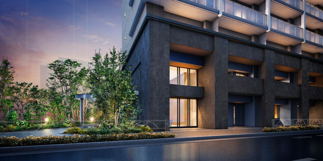 The building itself is designed as a work of art, featuring a grand double-height entrance hall with chandeliers and plantings that express the beauty of the four seasons. A hotel-like interior corridor design ensures residents stay dry from rain upon entry. The shared spaces boast high-quality interiors with marble-finish flooring, wood-look louvers, and carefully selected wall materials, creating a lounge-like atmosphere. Unit layouts range from 2LDK to 3LDK, with exclusive areas from 48.20㎡ to 70.02㎡. Balcony sizes vary from 3.5㎡ to 12.0㎡, with additional service balcony areas from 1.5㎡ to 2.6㎡.