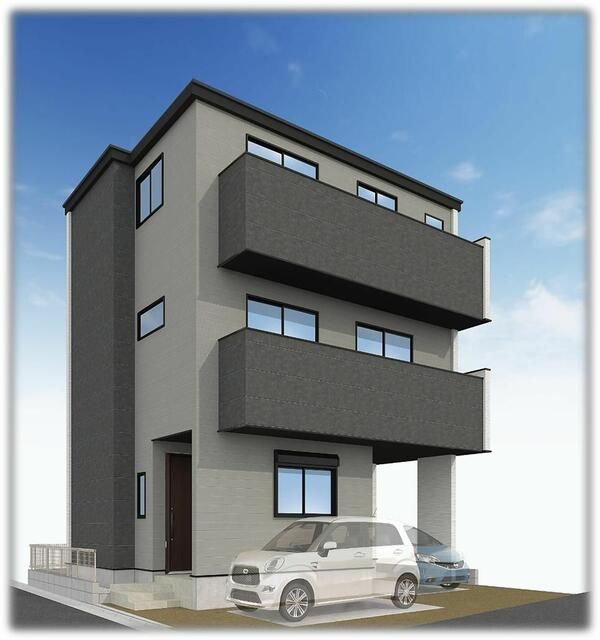 This newly constructed detached house, scheduled for completion in September 2025, offers a modern 4LDK layout across three stories. Designed to meet ZEH (Net Zero Energy House) standards, it prioritizes energy efficiency and comfortable living. The property features a second-floor living-dining-kitchen (LDK) area measuring 18.5 tatami mats, creating a spacious central family zone. The third floor includes a Western-style room equipped with a walk-in closet, providing ample storage.
