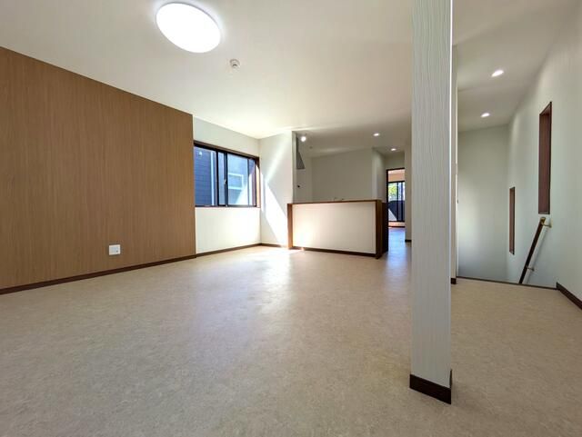 This newly constructed detached house, completed in February 2025, offers a modern living experience in the quiet, green residential neighborhood of Tsunishi, Kamakura City. The property boasts a spacious 3LDK layout with a generous 17-jo (approx. 28 sqm) combined living, dining, and kitchen area, featuring a comfortable living room staircase that creates an open and airy feeling. The other rooms include an 8-jo Western-style room, a 6.2-jo room, and a 4.4-jo room, all with built-in storage and flooring.