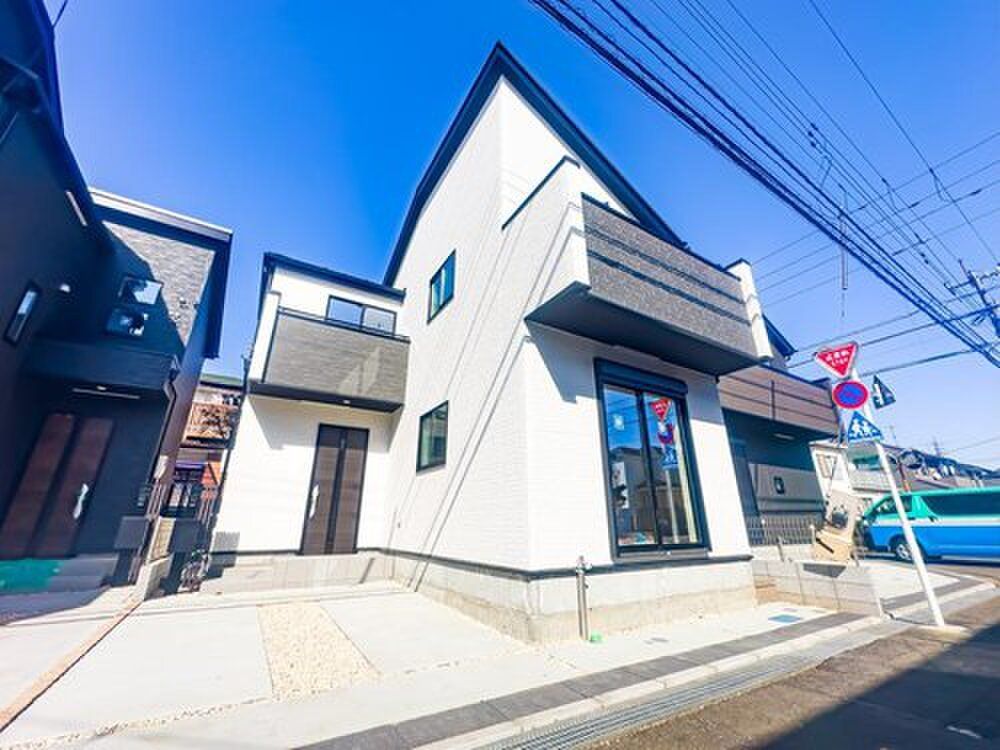 The houses boast a modern design. Unit 1 has a stylish two-tone color exterior with balcony accents, and Unit 2 features a simple, timeless design. The south-facing front road is approximately 6 meters wide, providing an open feel and smooth car access. Each property includes one parking space. The interiors are bright and open, with features such as a face-to-face kitchen designed for family interaction, walk-in closets in the master bedroom, and bathrooms equipped with drying functions. Key specifications include a dishwasher, solar power generation system (My Home Power Generation System), city gas, heated toilet seats, double-glazed windows, smart keys, and an energy-saving water heater.