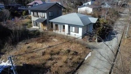 The property is equipped with electricity, public water supply, and a combined septic tank. It also includes a parking area and a vegetable garden plot. The east-facing garden area receives good light, and the front of the houses is open land, ensuring excellent sunlight. The location is quiet with minimal traffic. A notable feature is a small storage shed of approximately 2 tsubo (about 7.2㎡). The fixed asset tax is 70,600 yen, and the elevation is approximately 400 meters.