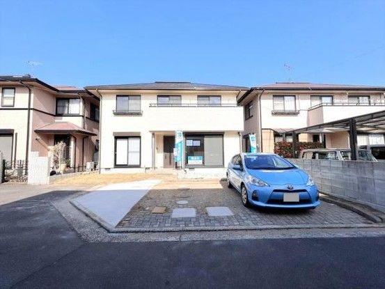 The house has undergone extensive renovations scheduled for completion in May 2026. The kitchen has been replaced with a new, spacious 2.55-meter-wide system kitchen. The 16-tatami-mat LDK features new ceiling and wall wallpaper and new flooring. The bathroom is a new unit bath by Houstec. The toilet has new wallpaper and flooring. The vanity unit has been replaced with a three-way mirror type. The exterior includes new roof and exterior wall paintwork in black and beige. The front door has been replaced. The 6-tatami Japanese-style room on the first floor has new wallpaper and new tatami mats. The two 6-tatami Western-style rooms and the 11-tatami Western-style room on the second floor have new wallpaper and flooring. The storage room has new wallpaper. The balcony has been cleaned and its parapet wall painted. The gate and fence have been removed, and garden trees cut down to create parking space for up to three standard-sized cars. All lighting fixtures have been replaced with remote-controlled, color-adjustable models.