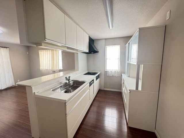 The house features a generous 4LDK layout with a total floor area of 115.96 square meters spread over three stories. Key equipment includes a system kitchen with a counter, allowing the cook to interact with family in the living area. The bathroom is equipped with a reheating function, ensuring a warm bath is always available. For security, a TV monitor doorphone is installed. The property is all-electric and includes features such as underfloor heating, a walk-in closet, and storage in every room. A built-in garage provides parking for one vehicle at no extra cost.