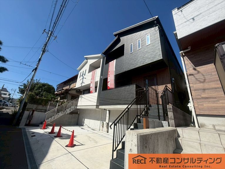 This modern detached house, built in March 2024, is located in a quiet, green residential neighborhood in Kobe's Nada Ward. The property is a 13-minute walk from Oji Koen Station on the Hankyu Kobe Line, offering convenient access to the city.