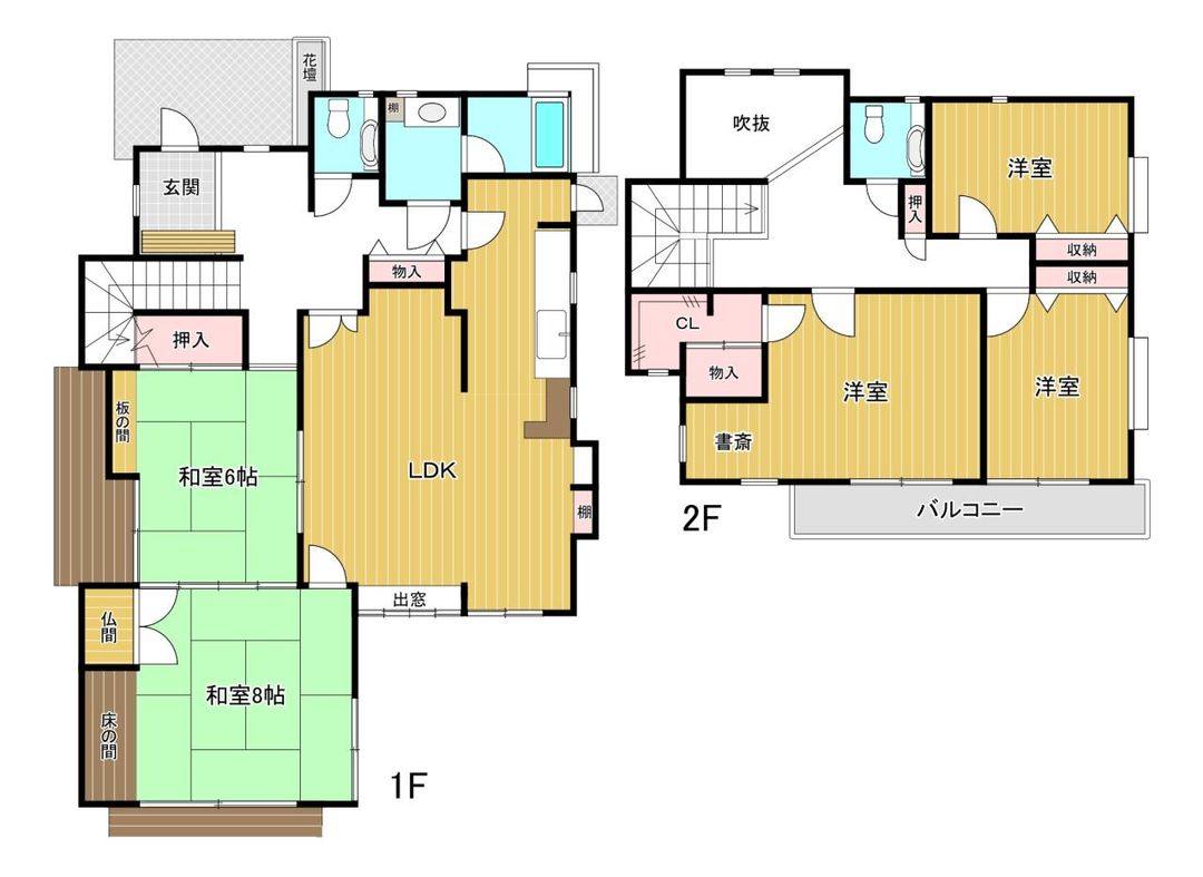 This substantial detached house, built in April 1988, offers a generous 167.49㎡ of living space across two stories, situated on a large 302.35㎡ plot of land. The layout is a versatile 5LDK, providing ample room for family living, hobbies, or home offices. The property is located in a quiet residential neighborhood, ensuring a peaceful living environment.