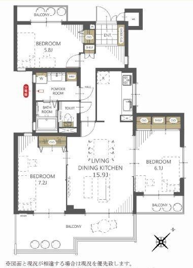 This well-maintained 3LDK apartment, located in the Excel Heights Nishinokyo complex, offers a comfortable living space of 81.09 square meters. The property features a balcony of 17.53 square meters and is situated on the third floor of a three-story reinforced concrete building. The apartment has undergone a recent renovation scheduled for March 2026, which includes new wallpaper, flooring, and fittings throughout, as well as a full house cleaning.