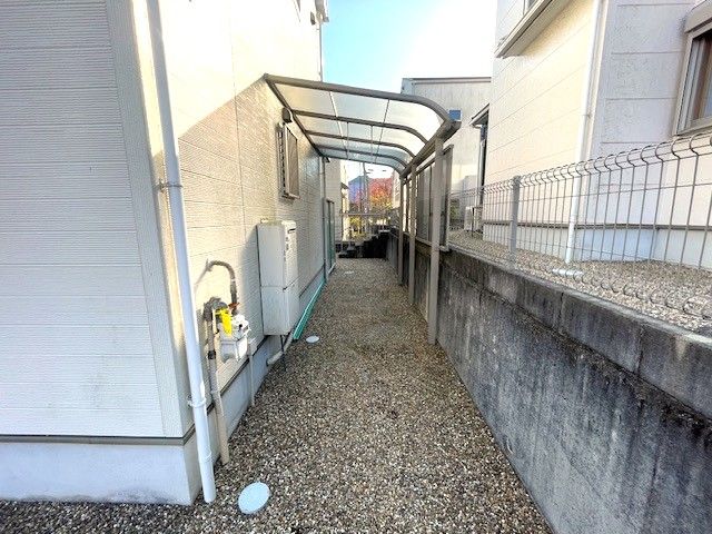 For daily convenience, the house includes two separate toilets located on the first and second floors, eliminating morning queues. The bathroom is a spacious system bath with a reheating function, allowing for a warm bath at any time, and is fitted with a dryer, useful for laundry on rainy days. Additional amenities include a TV monitor intercom for security, a three-sided mirror vanity with storage, and a roofed bicycle parking area.