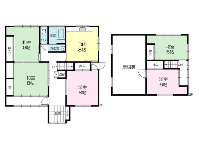 This property is a spacious 5DK detached house located in Takatadai 4-chome, Kamigori Town, Ako District, Hyogo Prefecture. The house offers a generous total floor area of 132.38 square meters on a sizable 255.68 square meter plot of land. Built in September 1983, this 43-year-old wooden two-story home is currently vacant and ready for immediate handover.