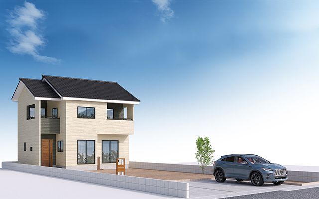The kitchen is a counter-style, face-to-face design equipped with an IH cooktop, dishwasher, and water purifier as standard. The home features an all-electric system. Other notable equipment includes a shower-equipped vanity, bathroom dryer, bathroom heater, two or more water-saving toilets, double-glazed windows, and a TV monitor intercom. Storage solutions include a pantry and closets in all rooms. The exterior boasts a wide garden and parking for up to three vehicles.