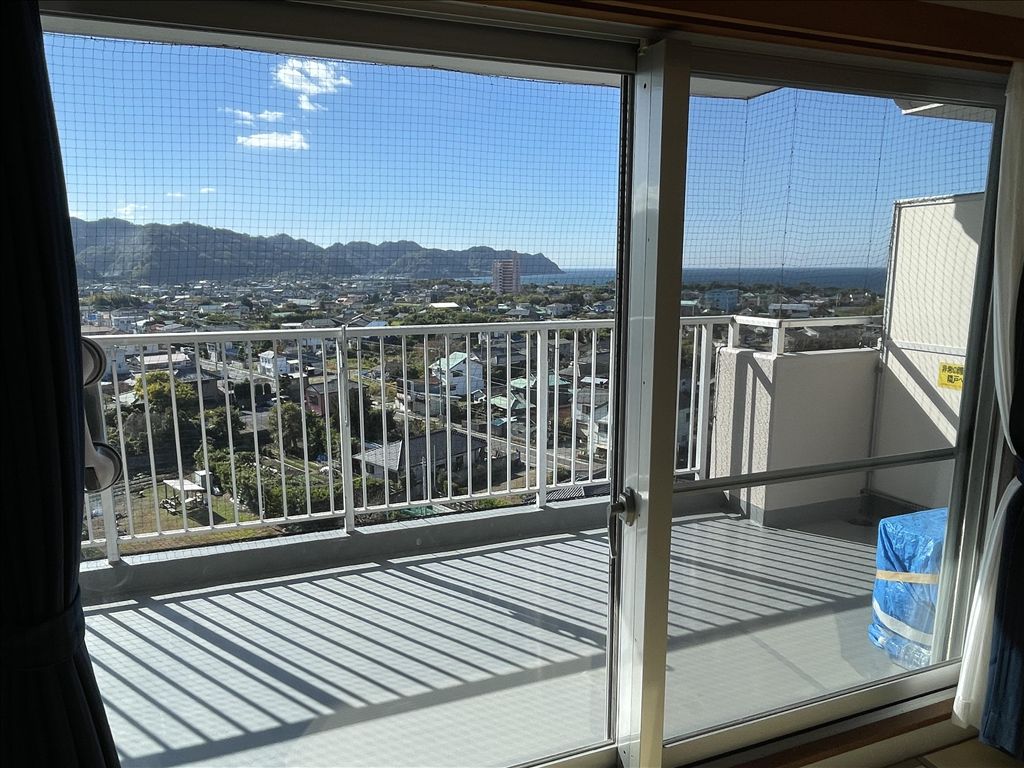 This property is a 2LDK apartment located on the 10th floor of the 14-story Es-Cale Iwai condominium in Minamiboso City, Chiba Prefecture. The unit offers a generous private floor area of 91.83 m² (approximately 27.77 tsubo) and features a southeast corner position, providing excellent natural light and views. The layout includes two Japanese-style rooms, a living-dining-kitchen area, and a balcony measuring 16.66 m² (5.03 tsubo). The LDK and one of the Japanese rooms can be used as a single integrated space, offering flexible living arrangements. On clear days, the balcony provides a view of Mount Fuji to the west.