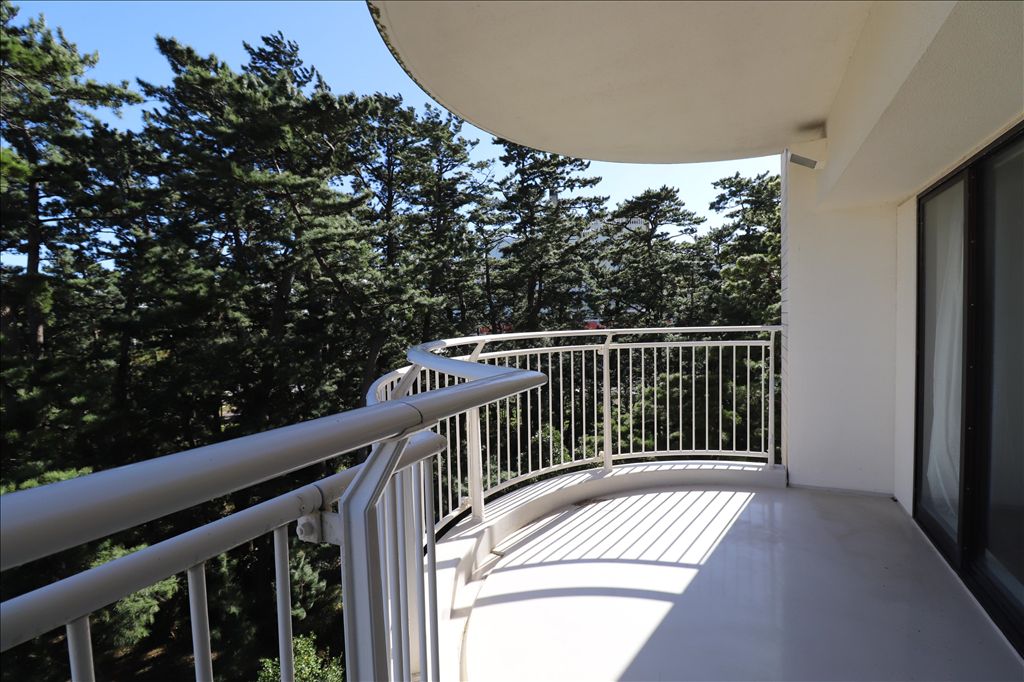 This property presents a spacious 107.16 m² southeast corner residence within the prestigious Kamogawa Grand Tower, a 33-story high-rise condominium offering a life of comfort and resort-style amenities. The unit features a 1LDK layout designed to maximize the scenic views over the surrounding pine forests, creating a distinctive and tranquil atmosphere.