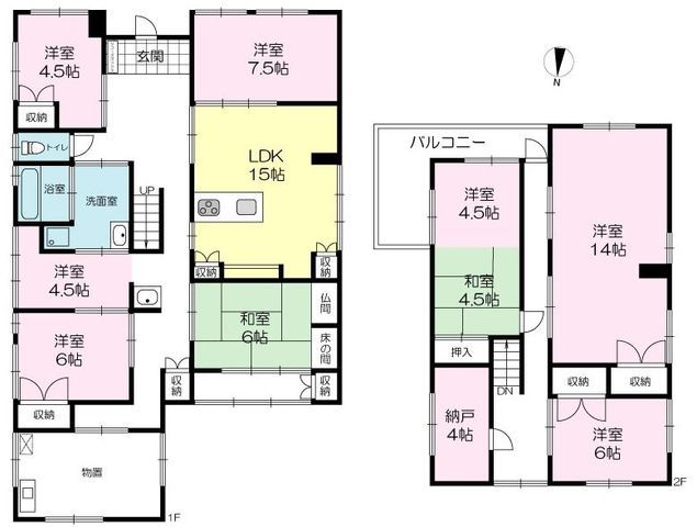 Comprising ten rooms, the layout is exceptionally generous. The largest space is the 15-jo (approx. 24.75 sqm) living-dining-kitchen area. Additional rooms include multiple Western-style rooms (4.5, 7.5, 6, 4.5, 6, and 14 jo), two Japanese-style rooms (6 and 4.5 jo), and a 4.5-jo storage room. The total building area is 242.12 sqm on a 374.51 sqm (official register) plot of land. The property is a two-story wooden structure built in January 1980. The current status is vacant, and viewings are possible. The transaction is based on the property's current condition. Please note that the age of the building is based on tax certificate records.