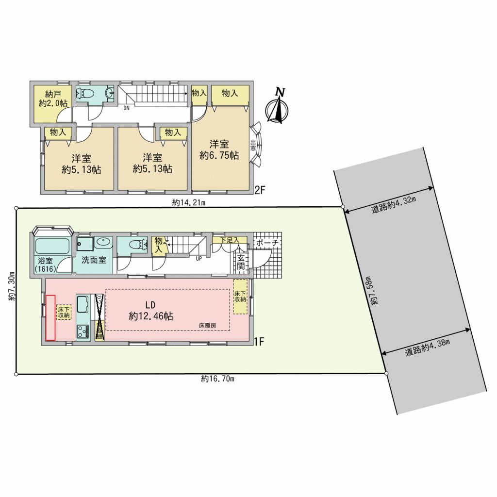 This detached house in Nishinogawa 3-chome presents a comfortable living space with its 3SLDK layout spanning 88.46 square meters. Built in 2002, the property features a bright living area with underfloor heating, a spacious bathroom with drying functionality, and ample storage solutions including underfloor storage and a two-tatami storage room on the second floor.