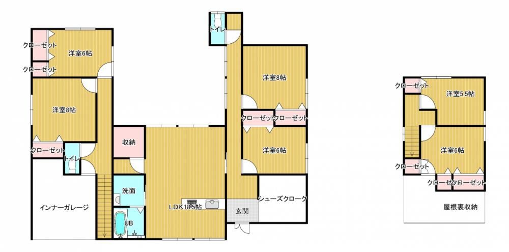 The property boasts an expansive layout with approximately 18-jo (about 30 sqm) living room and six Western-style rooms, offering immense flexibility for large families, home offices, or hobby spaces. Key renovation details include the replacement of all flooring and wall/ceiling wallpaper throughout, transforming existing Japanese-style rooms into bright, modern Western-style spaces. The kitchen will be completely new, featuring a counter-style design from EIDAI SANGYO with a quiet sink to minimize splashing noise. The bathroom is being replaced with a new one-pyo (approx. 3.3 sqm) unit bath from HouseTec, large enough to stretch out and relax. Two toilets, one on each floor, will be new Janis units. The entrance door is being replaced with a new swing-type door, and the genkan area will feature new tiling and a shoe cabinet. Switch plates are being replaced, and electrical outlets are being added as appropriate for the floor plan.