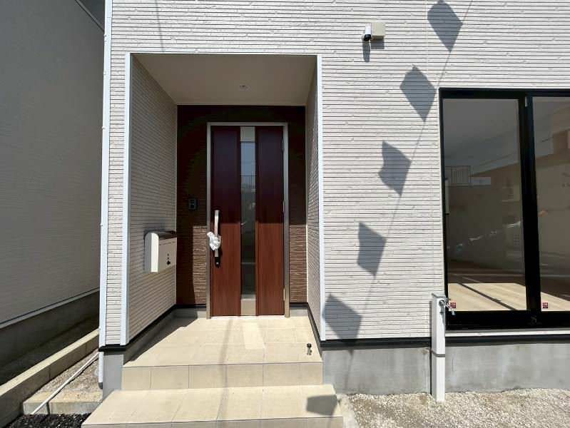 This newly built detached house, located in the Umoza no Mori 2-chome district of Nago City, Okinawa, offers a modern and spacious 4LDK layout. The property features a total floor area of approximately 96.39 square meters (about 29.2 tsubo) spread over two stories, situated on a land plot of approximately 188.79 square meters (about 57.1 tsubo). The construction is wood-frame and other materials, with a south-facing orientation for excellent natural light. Key amenities include a system kitchen with a counter, water purifier, propane gas, bathroom dryer, a vanity washbasin, two toilets with warm-water bidet seats, under-floor storage, and a monitor-equipped intercom. The property also includes three tandem parking spaces.