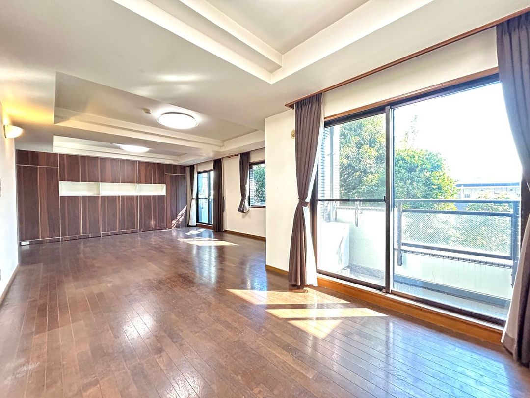 The apartment's layout is designed for comfortable family living. It features a south-facing orientation, filling the rooms with natural light. A key highlight is the expansive 45 sqm roof balcony, providing exceptional outdoor space for relaxation and entertainment. The kitchen is arranged in a face-to-face style, perfect for fostering conversation with family while cooking. The property also includes a walk-in closet and a dishwasher among its equipment. Significant renovations were carried out in September 2008, including the replacement of flooring with solid wood in a 10-tatami mat Western-style room, re-plastering of ceilings and walls with diatomaceous earth in several rooms, replacement of the unit bath, vanity counter with shelving, and toilets on both the 1st and basement floors.