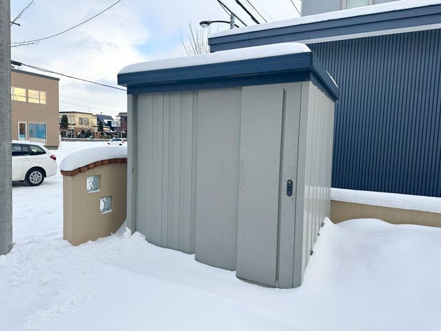 The house is equipped with a full range of modern amenities. The kitchen is a system kitchen with a countertop design that faces the living area, allowing you to keep an eye on children while cooking. It features an IH cooktop, part of the home's all-electric setup which reduces fire risk and makes cleaning easier. Other notable equipment includes a bathroom dryer, heated toilet seats, underfloor heating, a TV monitor-equipped door phone, and storage in every room. For the cold Hokkaido winters, the home is fitted with a cold-climate specification heat storage heater to ensure comfortable warmth. The property also includes a roofed balcony, a carport for three vehicles, and an outdoor storage shed.