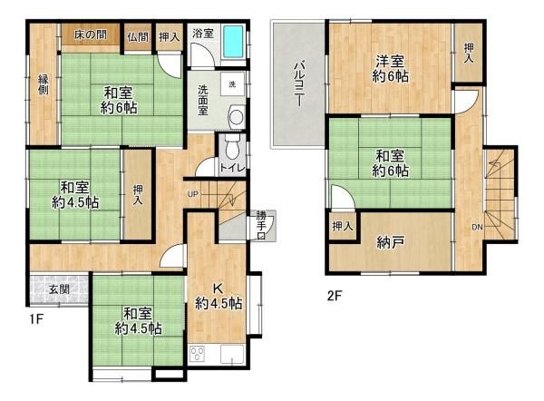 This well-maintained single-family home, located in the peaceful neighborhood of Kunioka, Inami Town, Hyogo Prefecture, presents an excellent opportunity for comfortable family living. The property features a 5SK layout, offering five rooms plus a kitchen, providing ample space for various needs. The building spans a total floor area of 104.68 square meters, situated on a generous 132.54 square meter plot of land.