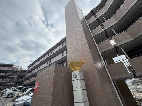 The building is equipped with a range of amenities including an auto-lock system, a 24-hour security system (consultation required), an elevator, a bicycle parking area, and a motorcycle parking area. A parking space is also available. The property is managed by a full-time management company (Naniwa Management Co., Ltd.) with a resident manager on weekdays. Utilities include city gas, public water supply, and sewer drainage. The electricity is provided by Kansai Electric Power. The total number of units in the building is 319. It is a corner room with a counter kitchen. The kitchen layout is a face-to-face type.