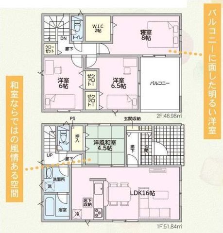 This newly constructed detached house, located in the SasaKura district of Toyama City's Fujinami Town, offers a spacious and modern living environment. The property features a 4LDK layout with a total floor area of 98.82 square meters, spread across two stories. The layout includes a generous 16-tatami mat living-dining-kitchen area on the first floor, a 4.5-tatami Japanese-style room, and three Western-style rooms on the second floor (8-tatami, 6.5-tatami, and 6-tatami). A key highlight is the abundant storage, including a walk-in closet, ensuring a tidy and organized home.