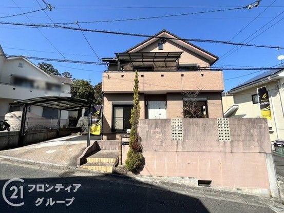 This well-built, 2-story detached house located in Oshikuma-cho, Nara City, offers a solid and reassuring design, providing a sense of security for long-term living. The property sits on a quiet residential street and features a sturdy exterior with a calm, dignified color scheme.