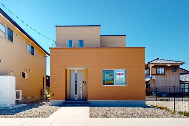 This property is a modern detached house built in July 2023, located in Sakai City, Fukui Prefecture. The house offers a total floor area of 109.06 sqm (approximately 32.99 tsubo) on a generous land plot of 199.21 sqm (approximately 60.26 tsubo). The layout is a 4LDK configuration, featuring four Western-style rooms of 8, 6.5, 6, and 5 tatami mats in size, plus a 16-tatami mat LDK living/dining/kitchen area. The design includes thoughtful elements such as high windows that create a sense of spaciousness and an accent climbing staircase with a gentle wood grain finish, designed to encourage family interaction.