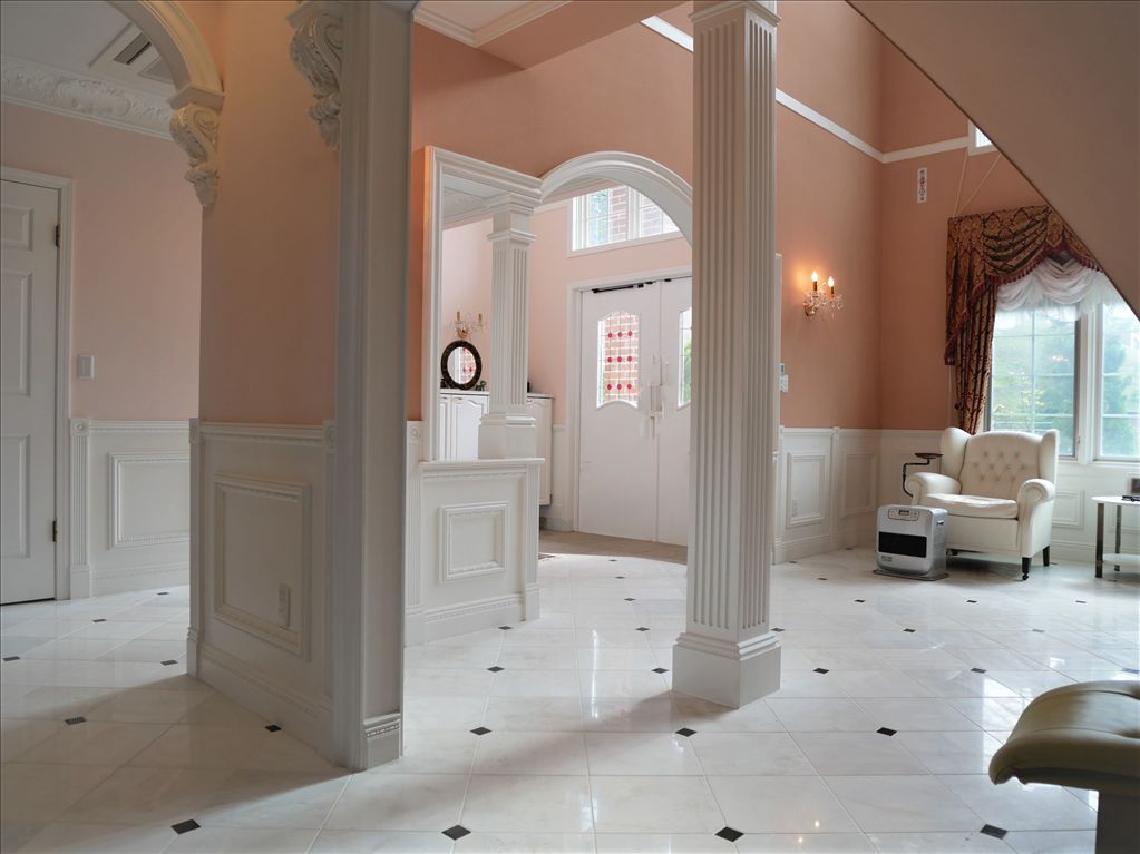This distinguished brick-style villa in Hakone's Sounkyo resort area offers a luxurious retreat with expansive living spaces and breathtaking panoramic views of the Hakone outer rim mountains, stretching from Mount Daimonji to Mount Kintoki. The property features a generous 5LDK layout plus an attic storage room and a utility space, providing ample room for family and guests. The approximately 18-jo (29.7 sqm) Western-style living room, complemented by antique furniture, opens to a balcony, while the adjoining approximately 19.6-jo (32.3 sqm) dining kitchen creates a grand, resort-like atmosphere. A key highlight is the cypress-wood bath (hinoki-buro) where you can soak while enjoying the mountain vista, accompanied by both a dry sauna and a mist sauna.
