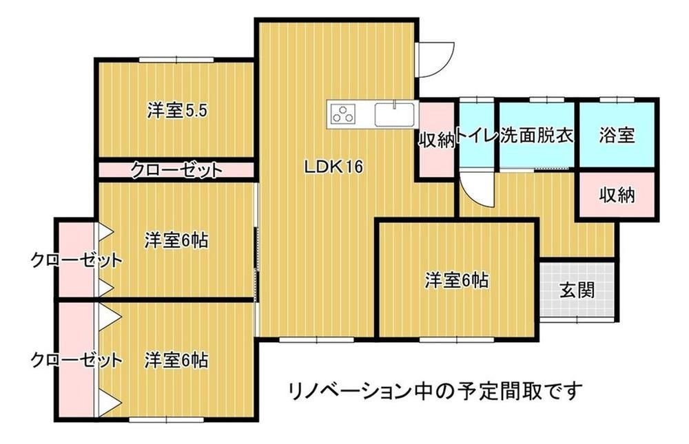 The renovation details are extensive. The living room features new flooring, replaced wallpaper, and newly installed lighting fixtures. A spacious one-tsubo (approx. 3.3m²) unit bath was newly installed, offering ample space to stretch out and relax. The kitchen was converted to a face-to-face style and fitted with a new Cleanup system kitchen. All bedrooms received new flooring and wallpaper, with new fixtures and lighting. The entrance was updated with new sliding doors, and the washroom now boasts a new vanity with a shower. New closets with overhead storage shelves were added for convenience. The toilet was replaced with a new model featuring a bidet washlet. Furthermore, all windows throughout the house have been upgraded to double-pane glass for improved insulation.