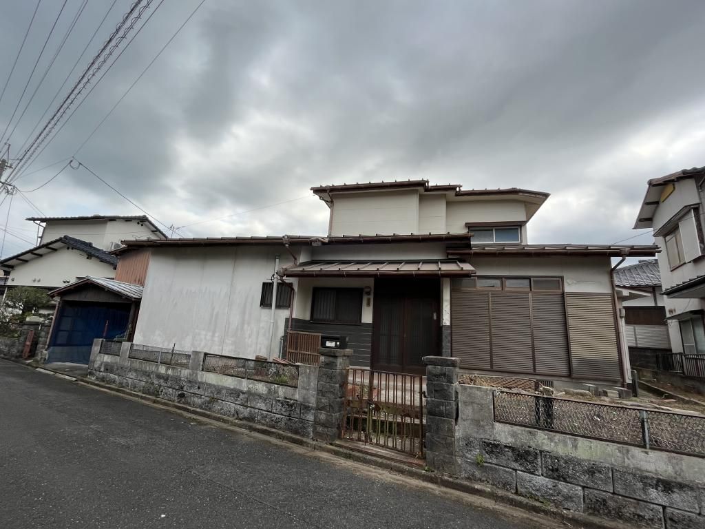 This property is a detached house for sale in Chikujo Town, Fukuoka Prefecture, offering a generous layout and land size. The house features a 5DK floor plan, providing five rooms plus a dining-kitchen area, with a total building area of 111.25 square meters set on a 189.38 square meter plot. Built in March 1974, this two-story wooden structure is situated in a quiet, south-facing residential neighborhood. Key property characteristics include two toilet facilities, a system kitchen, city gas, a monitor-equipped intercom, and parking for two or more vehicles. The corner lot location and potential for two-family living add to its appeal.