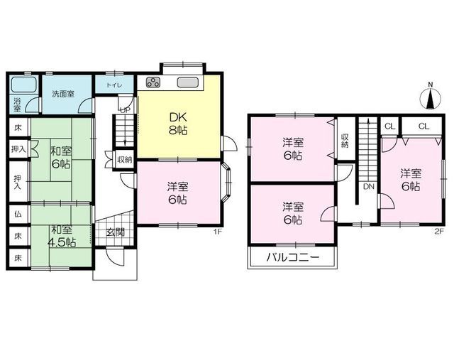 This well-maintained single-family home, built in February 1995, offers a generous living space of 106.81 square meters across two stories, situated on a 142.83 square meter plot of land in Taishi Town, Hyogo Prefecture. The property is currently vacant and ready for immediate handover. The layout is a versatile 6DK, featuring a bright 8-tatami mat dining kitchen on the first floor, alongside a 4.5-tatami Japanese-style room and a 6-tatami Western-style room. The second floor hosts three additional 6-tatami Western-style rooms, providing ample space for a family or home office needs.