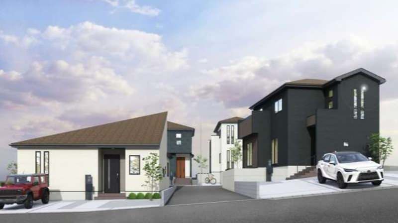 The house is equipped with a range of modern amenities for convenience and comfort. These include a system kitchen with a counter and water purifier, a dishwasher, propane gas, a bathroom dryer, a vanity with hair-washing basin, two toilets (one with a warm-water washlet), a walk-in closet, underfloor storage, and a monitor-equipped intercom. The property also comes with two parallel parking spaces.