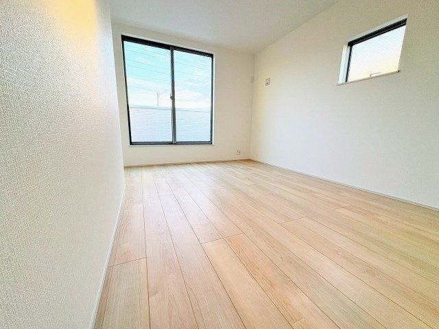 Key equipment and features include a system kitchen with abundant storage, allowing for tidy and spacious use, and a layout that overlooks the living room, enabling parents to cook while watching their children. The entrance is L-shaped for an open feel and includes a large, adjustable shoe closet that can easily store items like boots. The living room on the second floor is approximately 17-jo in size, benefits from good sunlight, and offers a relaxing space. All bedrooms come with large closets for ample storage. The bathroom is over one tsubo (approx. 3.3 sqm) in size, providing a spacious area for relaxing baths, suitable for families with children. The property also includes a system toilet, a three-sided mirror in the dressing area with storage behind it, and a balcony over 1 meter wide, perfect for drying laundry.