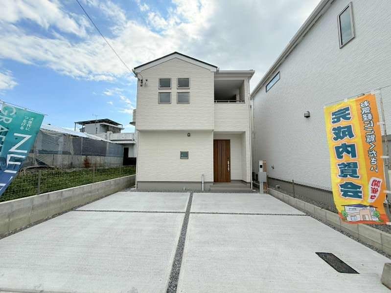 This newly constructed detached house, located in the peaceful area of Azama, Chinen, Nanjo City, offers a spacious 4LDK layout with a garden, ready for immediate occupancy. The property features a total floor area of approximately 96.9 sqm (29.3 tsubo) and sits on a land area of about 155.05 sqm (46.9 tsubo). The two-story, wood-frame construction includes a system kitchen with a counter, propane gas, a bathroom dryer, a vanity unit, a washlet toilet, a walk-in closet, and a monitor-equipped intercom. The south-facing balcony provides approximately 5 sqm (1.5 tsubo) of outdoor space. The property comes with two parking spaces and is conveniently located just a 4-minute walk from the Azama bus stop.