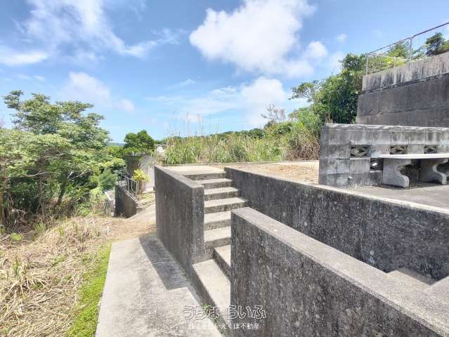 This listing is for a 33 square meter cemetery plot located in the Osato district of Nanjo City, Okinawa. The plot is situated on elevated ground, offering views of the ocean. The land is currently vacant, with no existing grave marker or structure. The site is described as having good sunlight exposure.