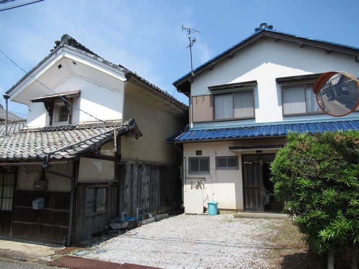 This property is a detached house for sale in Toyosato Town, Shiga Prefecture. The building consists of two connected structures, offering flexible living space. The property is situated on a corner plot within a quiet, south-facing residential neighborhood. The house has a total floor area of 82.16 square meters spread over two stories, and it sits on a generous land plot of 333.12 square meters, providing ample outdoor space. Parking is available for two or more vehicles.