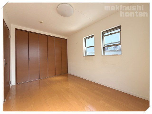 The house's standout feature is its exceptional southern orientation. All rooms face south, ensuring the entire home is bathed in natural sunlight throughout the day, creating a warm and pleasant atmosphere. The spacious LDK (Living, Dining, Kitchen area) is approximately 17 tatami mats in size and boasts a high 3-meter ceiling, enhancing the sense of openness. The kitchen is a popular counter-style design, facilitating communication with family while cooking. It is equipped with a three-burner gas stove and a grill, expanding cooking possibilities. The bathroom features a window for comfortable bathing even in summer and includes a bath heater and dryer, useful for drying laundry on rainy days or during pollen season.